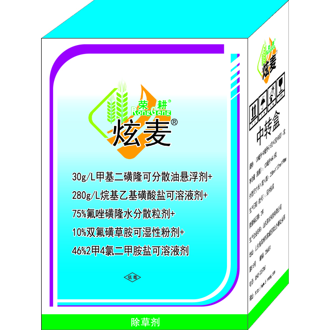 产品成分:30克/升甲基二磺隆油悬浮剂+75%氟唑磺隆水分散粒剂+10%双氟磺草胺可湿性粉剂+46% 2甲4氯二甲铵盐可溶液剂+280克/升烷基乙基磺酸盐可溶液剂