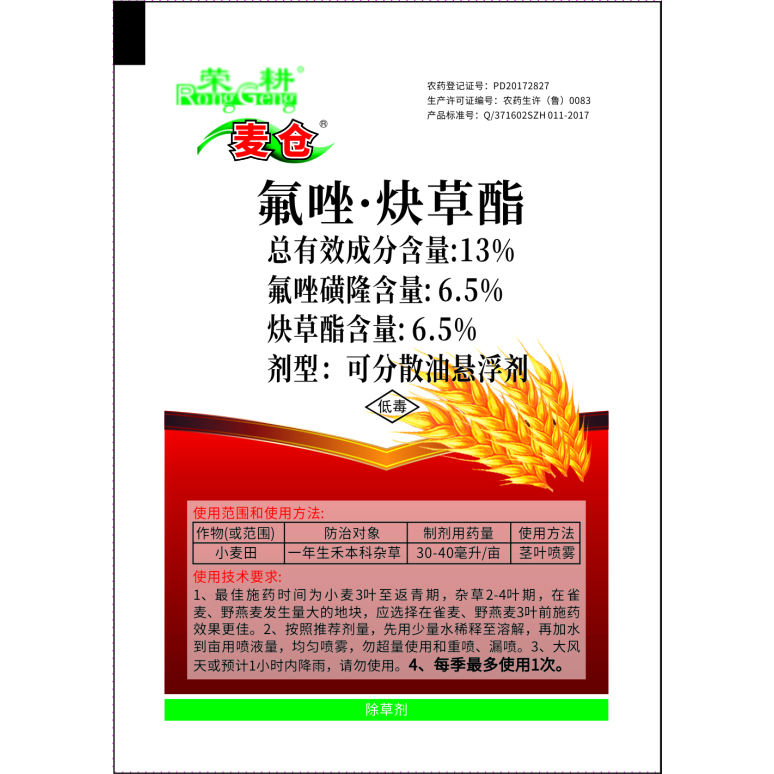 产品成分:13%氟唑﹒炔草酯可分散油悬浮剂