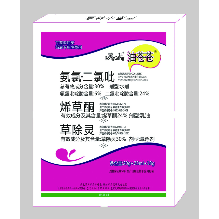 产品成分:24%烯草酮乳油+30%草除灵悬浮剂+30%氨氯·二氯吡水剂
